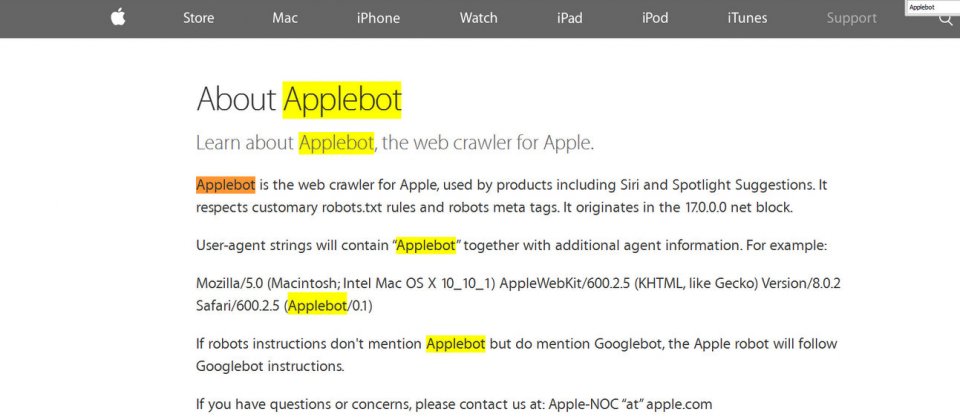 先前业界传言苹果可能悄悄在发展自己的搜寻技术,现在媒体则发现苹果在技术支持网页上透露其网路爬虫(web crawler)技术Applebot。