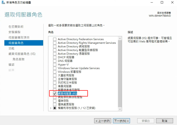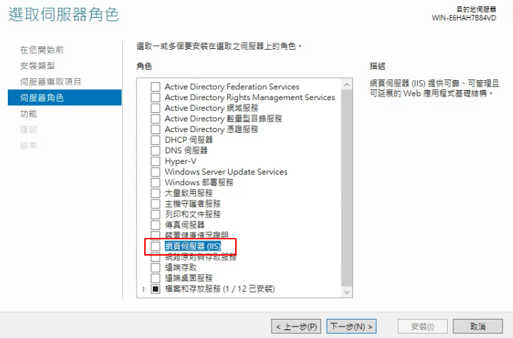 确认「网页服务器(IIS)」有勾选就按「下一步」。