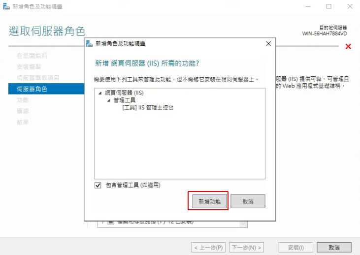 选取功能这边检查.NET Framework 4.x 功能是否有打勾。目前.Net Framework 版本主要分2 种。.Net 2.0 到3.5 都可使用.NET Framework 3.5 版本。超过4.0 以上的都选4.x 版本。画面上看到的4.7 版本有向下支援到4.0 版本。