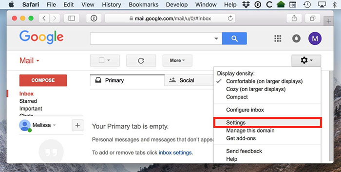 最后,如果您没有最近使用的电子邮件来取消阻止联系人,您可以改为从 Gmail 的设置中执行此操作。这些位于 Gmail 窗口右上角的大齿轮图标下。