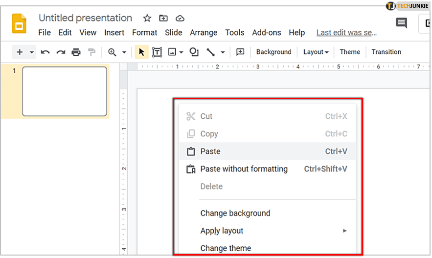 - 返回谷歌幻灯片,右键点击空白区域(删除文本框的地方)。