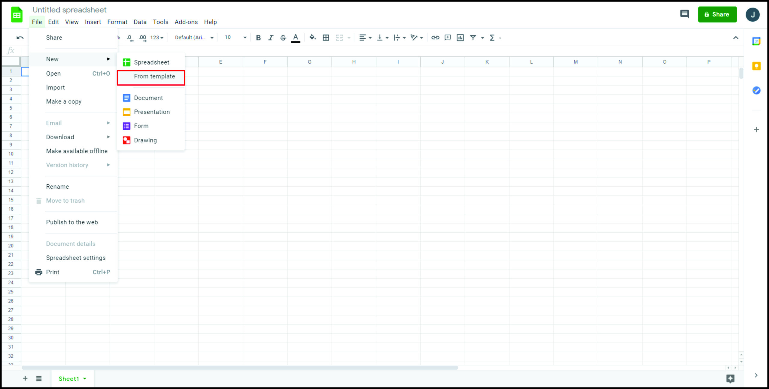 - 打开一个新的 Google 表格文档。