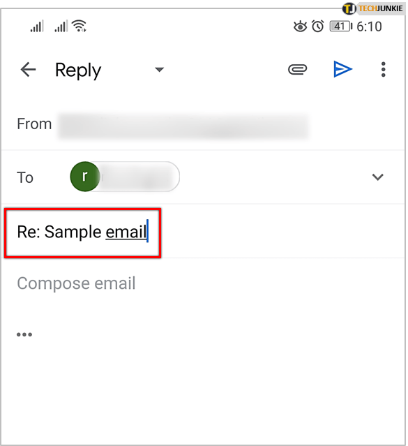 4. 主题行将准备好编辑默认情况下。点击它,删除当前主题行并输入一个新主题。