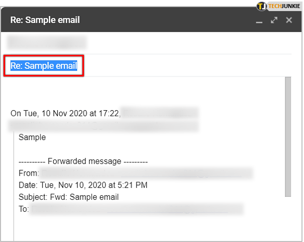 6. 将出现一个新的消息窗口。主题行将被选中,您可以自由编辑它。将其更改为您已经想到的内容。