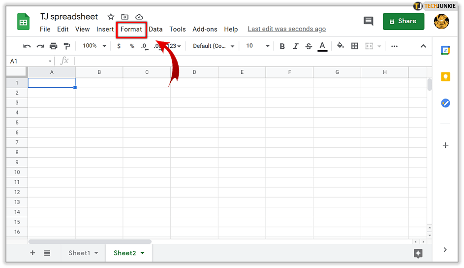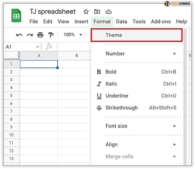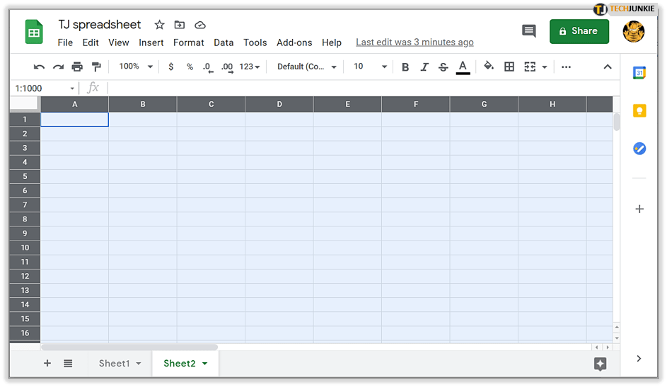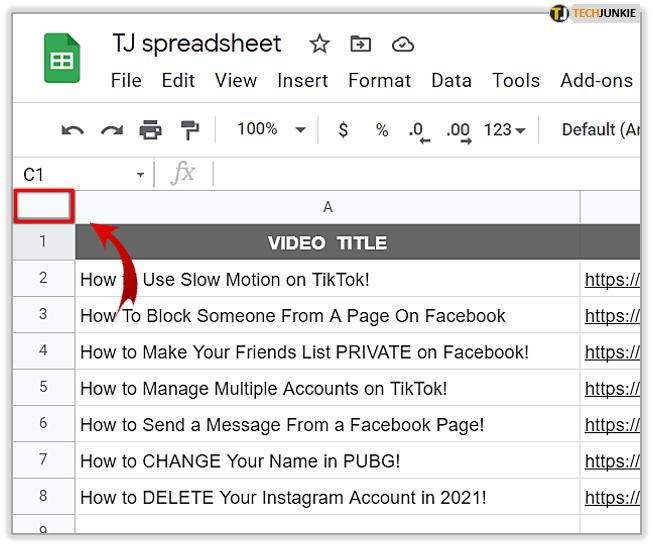 2. 导航到电子表格左上角的空白单元格,就在数字 1 和字母 A 之间。