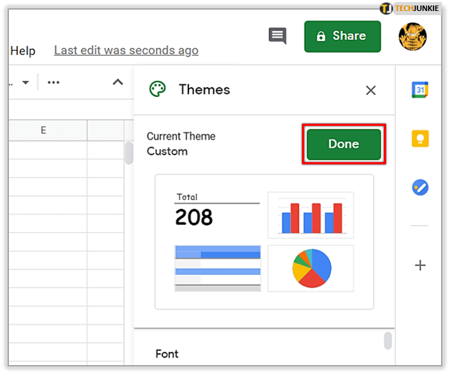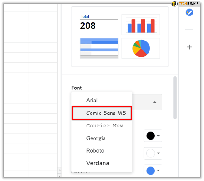 4. 从下面的下拉菜单中选择一种新字体。在这里您还可以更改主题颜色和图表背景。