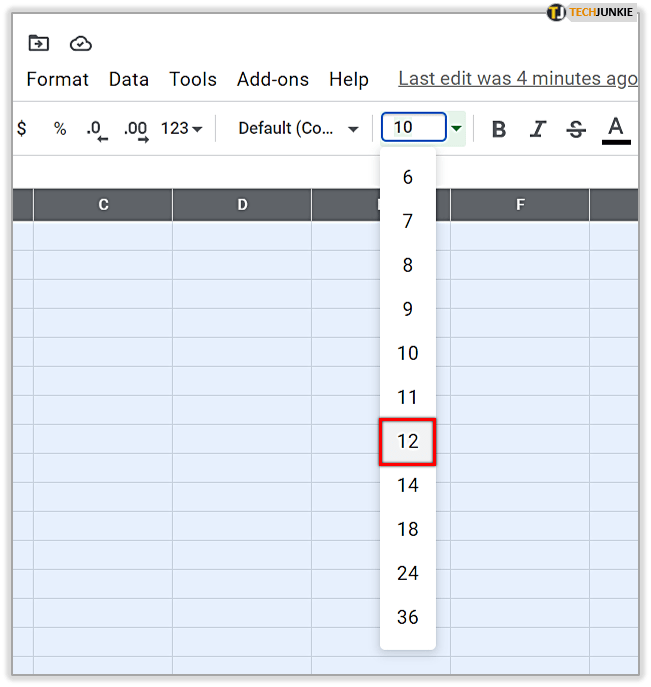 3. 从下拉列表中,为电子表格选择所需的字体大小。