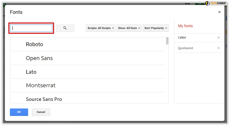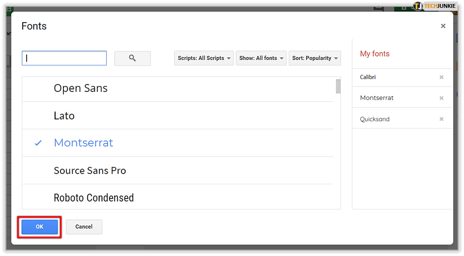 • 在新打开的窗口中,如果您知道所需字体的名称,请使用搜索字段查找所需字体。如果没有,您可以使用不同的过滤器来定位您想要的字体。有数十种字体可供选择。