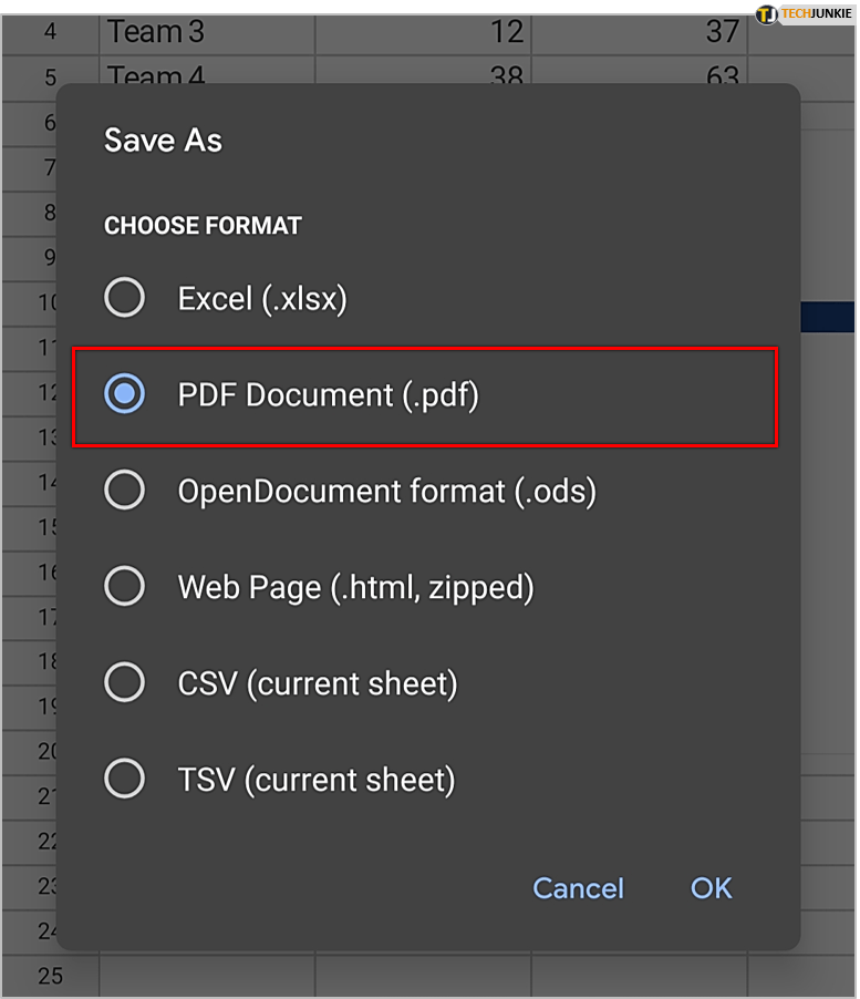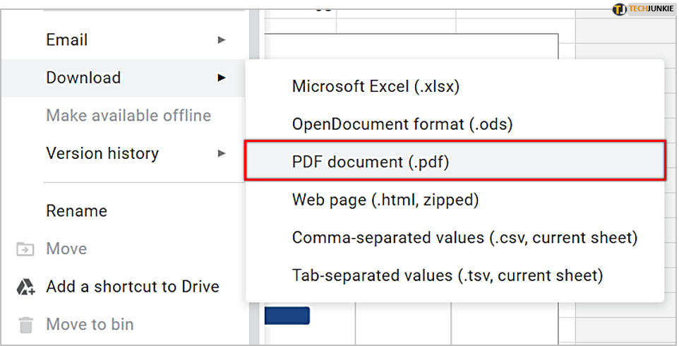 您可能会感到惊讶,但转换 Google 表格的方法into PDFs 是将文档保存为该格式。操作方法如下: