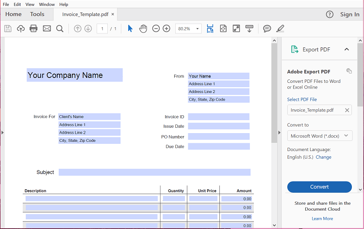 要使用它,只需“导出”您的 PDF 文件并选择您想要的格式将您的 PDF 转换为。从那里,将新转换的 PDF 文件插入 Word 相对容易。而且它的质量通常也更高。