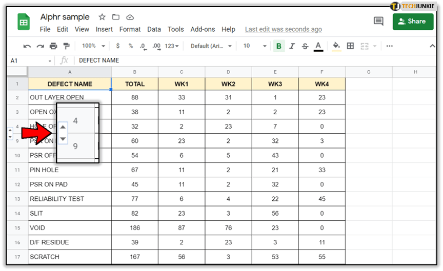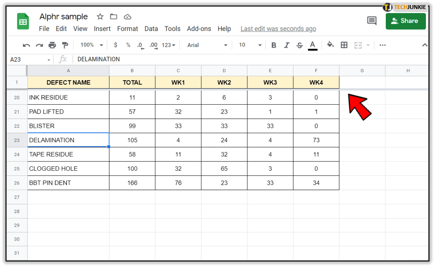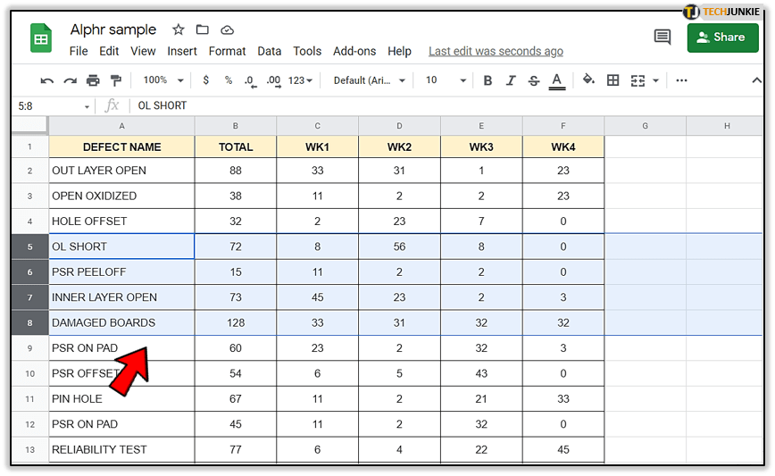 有时您不需要锁定行或列,并且在处理电子表格时也不需要参考它们。您可以暂时隐藏单元格和行,而不是删除它们。为此,请按照以下步骤操作: