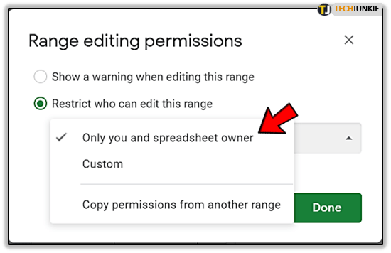 4. 选择“设置权限”,然后从菜单中选择选项。您可以选择“限制谁可以编辑此范围”或“只有您”。
