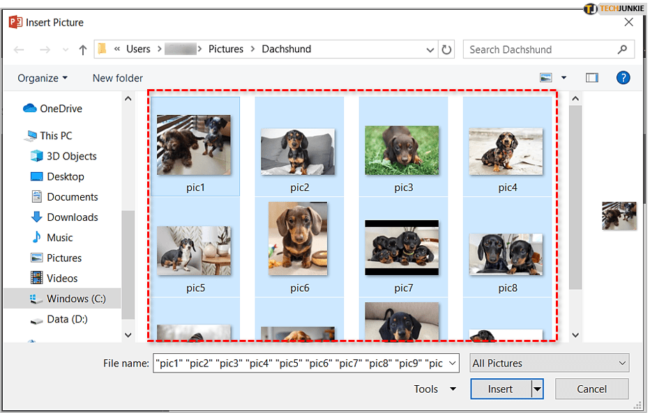 8. 由于屏幕上的图片太多,您的 PC 现在运行速度会变慢。按 Ctrl+A 选择所有照片。