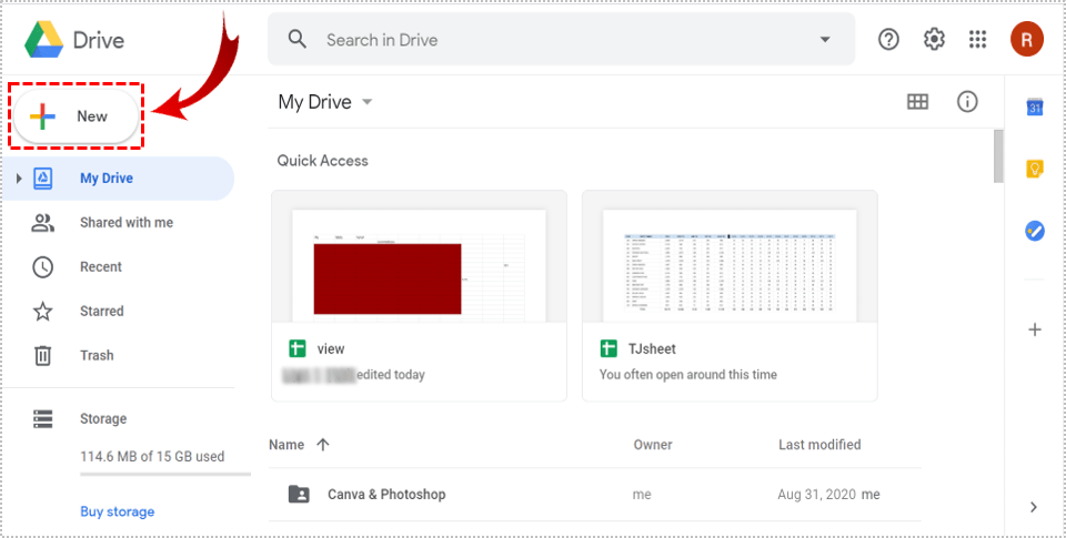 1. 转到 Google Drive,找到“新建”左上角的按钮。