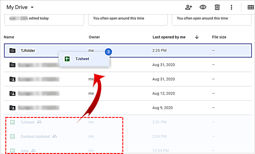 要移动现有工作表,请点击并拖动工作表到首选文件夹。您可以通过在单击每个工作表时按住 Ctrl 键来一次移动多个文件。选择文件后,您可以单击它们并将它们拖到目的地。