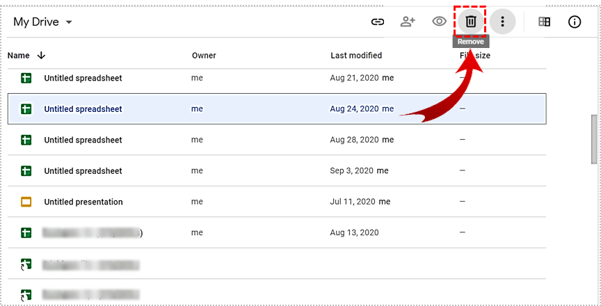 要删除工作表,只需将其移至废纸篓文件夹即可。您可以通过单击“删除”按钮来执行此操作。不要忘记偶尔清空垃圾箱文件夹,因为其中的文件会占用宝贵的存储空间。