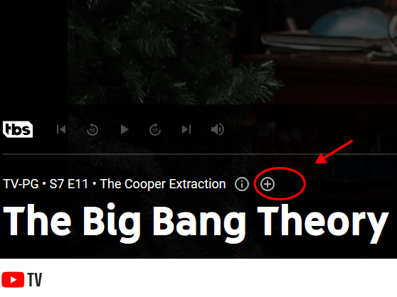 浏览直播内容时,点击一个频道。您将看到一个漂亮的屏幕截图和其他有用的信息。在底部,您应该会看到一个“+”号,如下所示。只需单击“+”号并将该节目添加到您的库中。 YouTube TV 将完成剩下的工作。