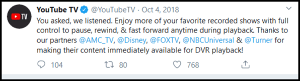 YouTube 仍在继续与网络合作以允许 DVR查看权限,它似乎正在工作。