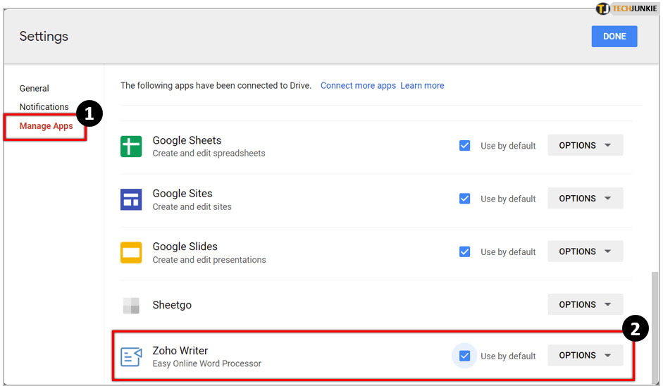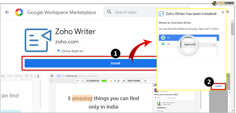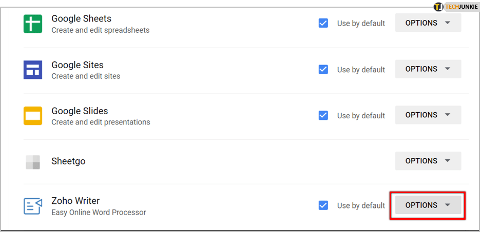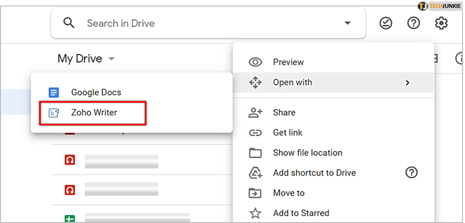 根据您安装的应用程序,只要在 Google Drive Apps 中设置为“默认使用”,它就会显示为一个选项在 Google Drive 中的某个地方。例如,我为本教程安装了 Zoho Writer。它不会显示在任何地方,但是当您右键单击 Google Drive 中的文档并选择打开方式时...Zoho Writer 将显示为一个选项。