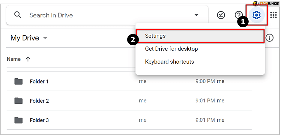 1. 选择右上角的灰色齿轮图标以访问 Google 云端硬盘中的设置。