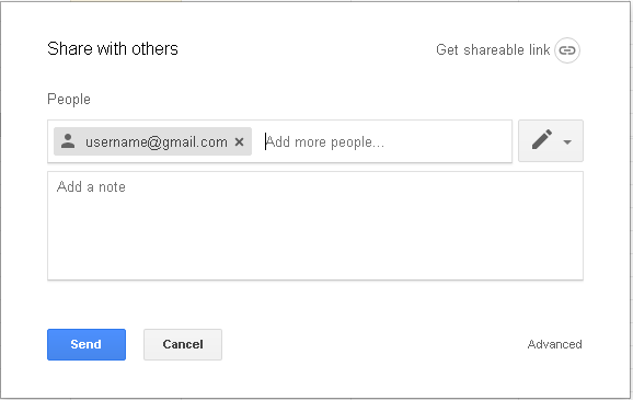3. 在“人员”部分下,添加您希望与其共享文件的电子邮件地址或 Google 群组。为避免发送通知,请点按更多More> 跳过发送通知