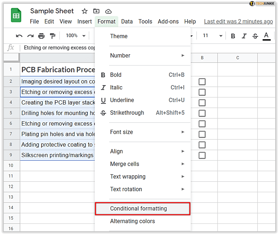 由于普通单元格和复选框单元格的格式规则相同,因此您可以根据其他部分自定义它们你的电子表格。这意味着您可以使用不同的颜色来标记它们,此外,它们的字体和字体大小也可以更改。