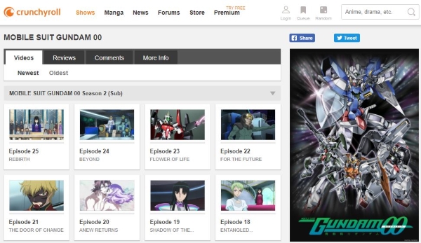 没有提及 Crunchyroll 的“在哪里可以看到插入动漫标题”的列表是不完整的。如果你喜欢你的动漫,它就是你的网站。它似乎包含了大量的高达内容,虽然分类不是最好的,但主页上有一个有用的最新和最旧过滤器。这应该让您决定是观看最新剧集还是按顺序观看。