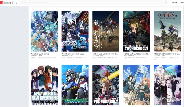 AnimeUltra 是我的新作品,但由我的一位动漫朋友推荐。它有一堆来自整个时间线和宇宙的高达游戏。这是一个看起来更好看的网站。过滤高达,选择一个系列图标,您将被带到包含所有剧集、概要、评论评分和剧集播放器的页面。