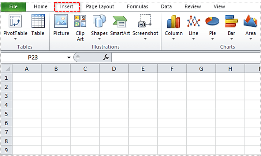 1. 打开 Excel 工作表,然后从工具栏中选择“插入”。