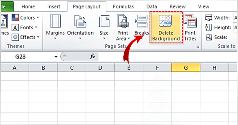 2. 现在,选择“页面设置”选项下的“删除背景”。