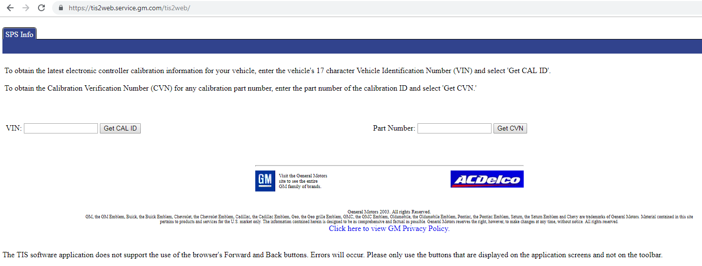 对于 1996 年或以后制造的 GM 汽车或卡车,您可以轻松查看如果您的车辆的 PCM 有可用更新,请访问 https://tis2web.service.gm.com/tis2web/。检查是完全免费的;您只需要 VIN。