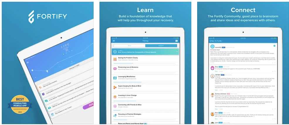 最受好评的色情成瘾应用程序之一Apple App Store,Fortify 是一款帮助所有年龄段的人克服瘾的应用。