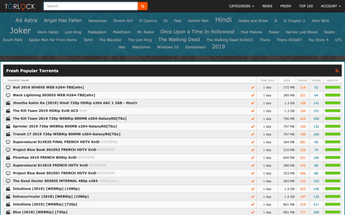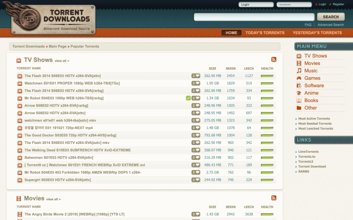 该网站分为类别,如“最新种子”、“热门下载”和“即将上映的电影”。但是,正如您所期望的,您也可以使用搜索栏搜索您想要的电影。