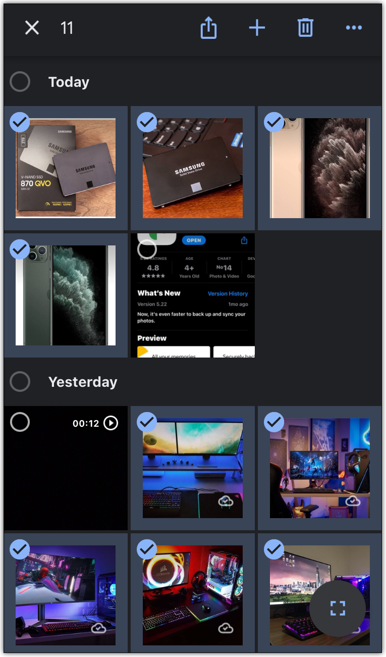 每个可以类似地选择和取消存档存档中的图像。