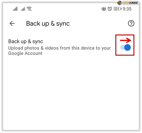 - 现在重新登录您的 Google 帐户,打开 Google 相册,然后启用“备份和”再次同步”选项。
