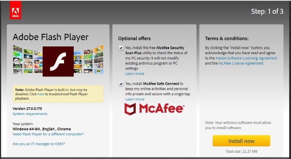 1. 访问 Flash Player 网站并下载最新版本。请记住取消选中可选优惠。