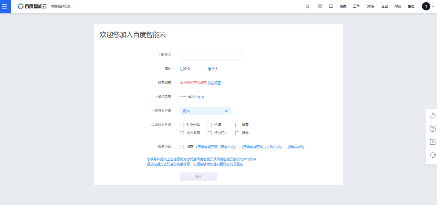 • https://cloud.baidu.com/?from=console,没有Baidu账号的注册一个
