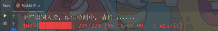 print('正在识别人脸, 颜值检测中, 请稍后.....')