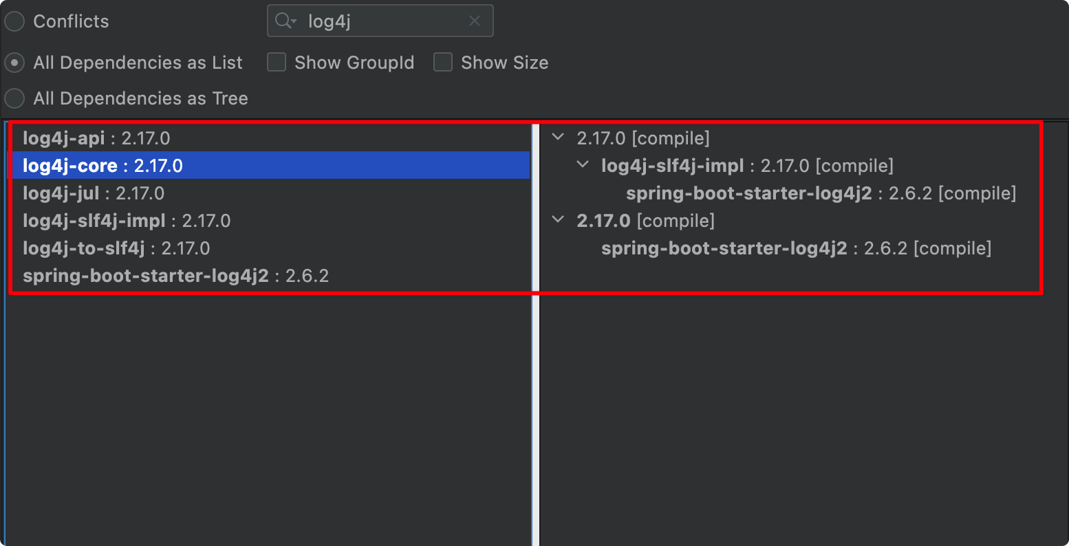 这两个版本都会升级到最新版本 Log4j v2.17.0: