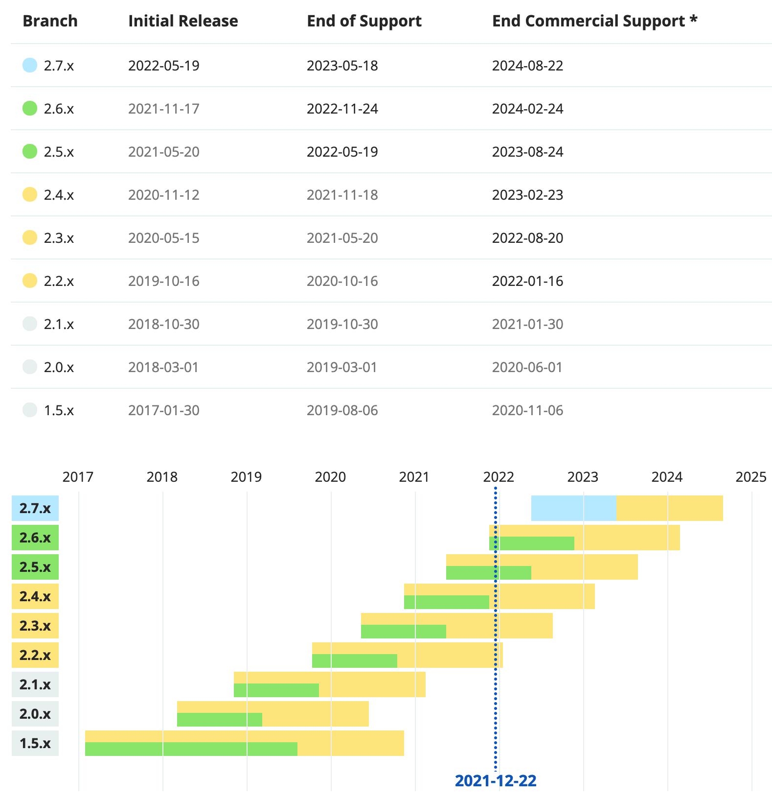 同时发布的还有 Spring Boot 2.5.8,另外可以看到,Spring Boot 现在目前维护了 4 条版本线: