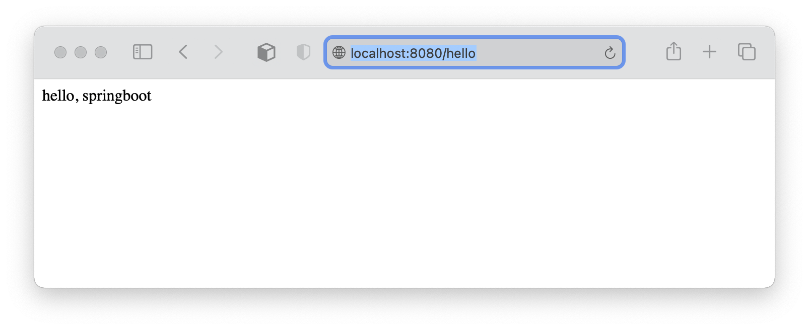 这段代码的业务逻辑非常简单,用户发送 hello 请求,服务器端回应一个“hello, springboot”回去,