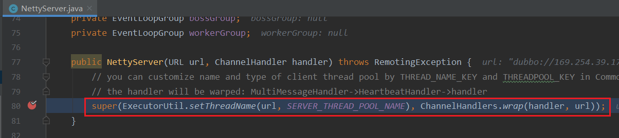 下面的createServer(url)方法就是创建netty服务端了,dubbo中默认netty监听埠是20880,所以平常我们如果本地20880埠占用了,那么启动dubbo服务就会失败的!