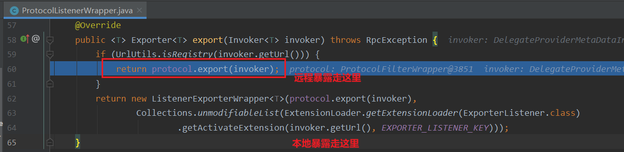 从这里我们知道,一个服务默认会本地暴露一次,同时还远程暴露一次;