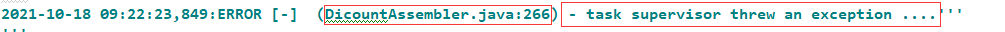 '''2021-10-18 09:22:23,849:ERROR [-]  (DicountAssembler.java:266) - task supervisor threw an exception ....''',