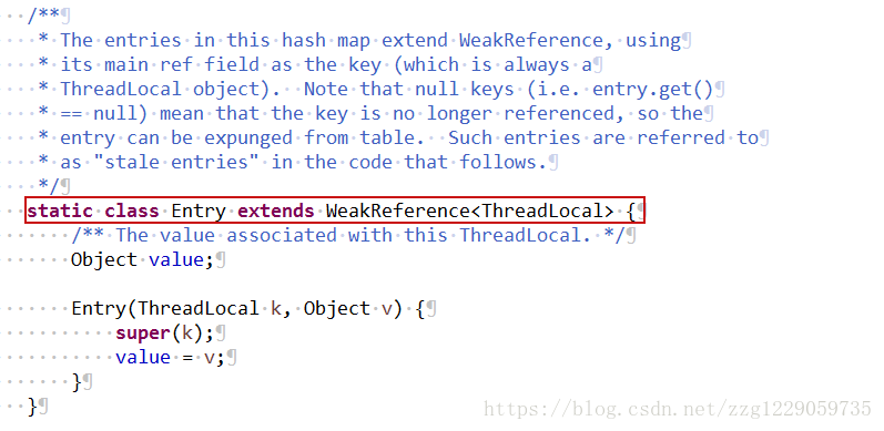 如上图所示,我们在作为key的ThreadLocal物件没有外部强参考,下一次gc必将产生key值为null的资料,若执行绪没有及时结束必然出现,一条强参考链Threadref–>Thread–>ThreadLocalMap–>Entry,所以这将导致存储器泄漏,