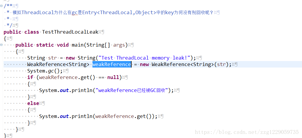上面演示了弱参考的回收情况,下面我们看下ThreadLocal的弱参考回收情况,