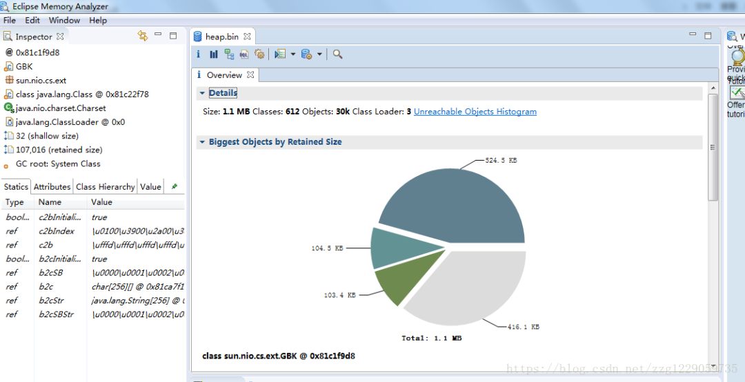 然后我们借助MAT可视化分析工具,来查看对存储器,分析物件实体的存活状态: