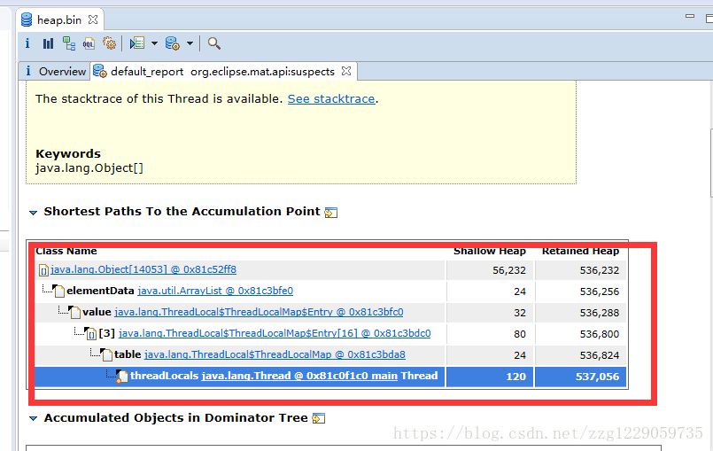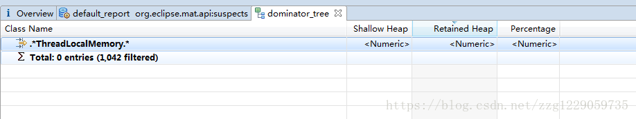 最后我们要确定Entry.key是否还在?打开Dominator Tree,搜索我们的ThreadLocalMemory,发现并没有存活的实体,