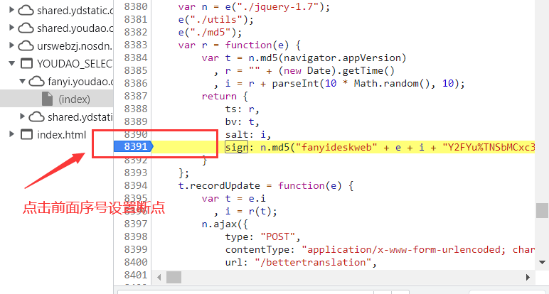 ==e==可以通过设定断点来判断,断点设定好后,再翻译一次,然后把鼠标箭头放在e上,可以很明显的发现e的取值与我们输入的内容相同