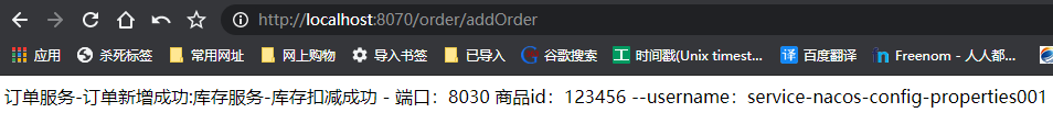 return "订单服务-订单新增成功:" + result + " --username:" + username;